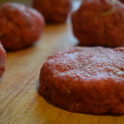 Selbst gemachte Burger-Buns (Brötchen) und Patties/Frikadellen aus richtig gutem Hackfleisch vom “LebensmittelPunkt”… Eigentlich aus unserem super Rinderhackfleisch, aber der/die eine oder andere mag gern gemischtes Hackfleisch aus Rind und Schwein dazu.