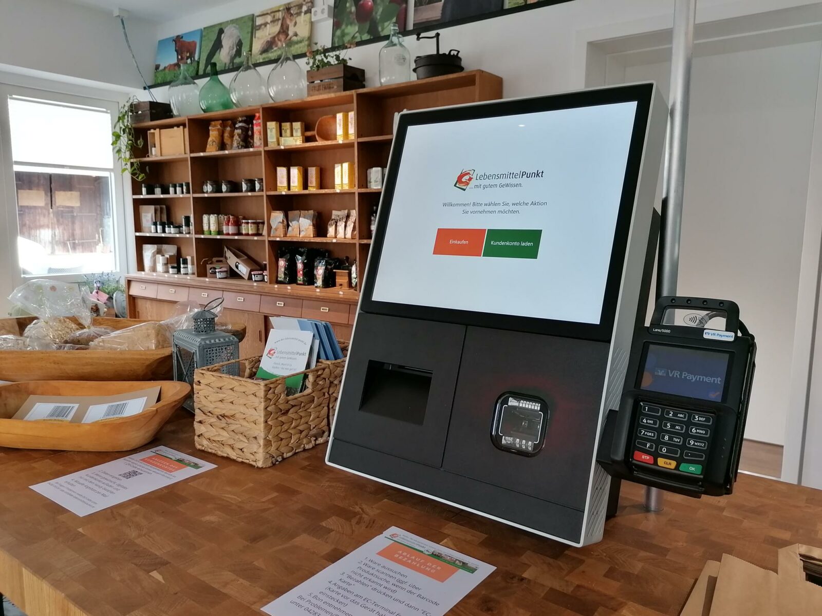 …ist die komplette Funktion ohne Personal. Sämtliche Ware hat einen Barcode aufgedruckt und die vollautomatische Kasse übernimmt beim scannen der Produkte alles automatisch. Die Informationen auf dem Bildschirm führen durch den ganzen Vorgang, die Bezahlung erfolgt dann ausschließlich mit Karte.