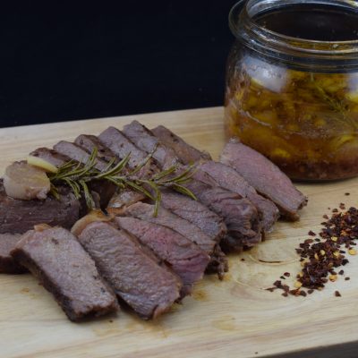 Confiertes Bio-Rumpsteak behält seine Saftigkeit, ist toll aromatisiert durch die eingelegten Zutaten und ist bei guter Rohware ein echtes Highlight.