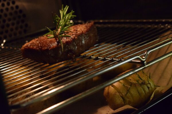 Rumpsteak (ca. 3cm breit) eine halbe Stunde vor dem eigentlichen Start der Zubereitung aus dem Kühlschrank holen, damit es sich “akklimatisieren” kann.