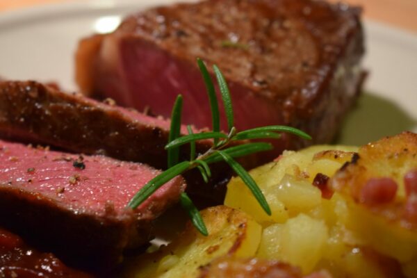 Rumpsteak mit Bratkartoffeln und BBQ-Sauce