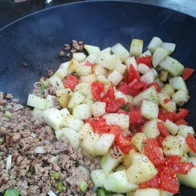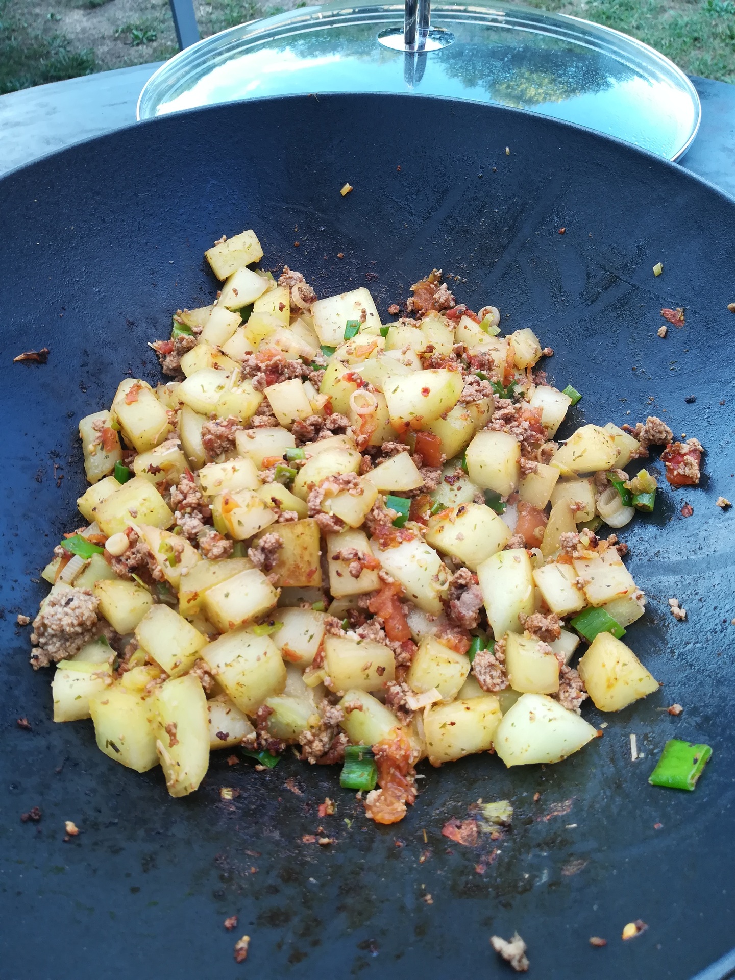 Die Zusammensetzung dieses einfachen aber sehr leckeren Gerichtes kann, je nach Vorlieben, sehr gut variiert werden. Das Gericht kann eher Fleischlastig sein, oder aber, man nimmt das Hackfleisch als kleine besondere Note, wie wir es hier zeigen.