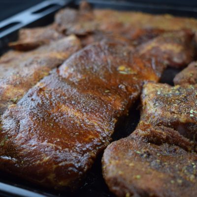 Die Rippchen reiben wir von allen Seiten gründlich mit dem selbstgemachten Rub ein und stellen sie für etwa 3 Stunden in den Kühlschrank…
