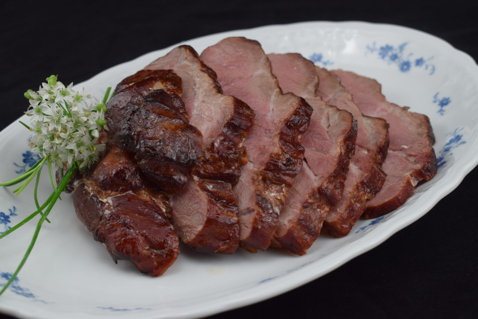 Fein marmoriert und durchwachsen, mild geräuchert, ohne Knochen.
